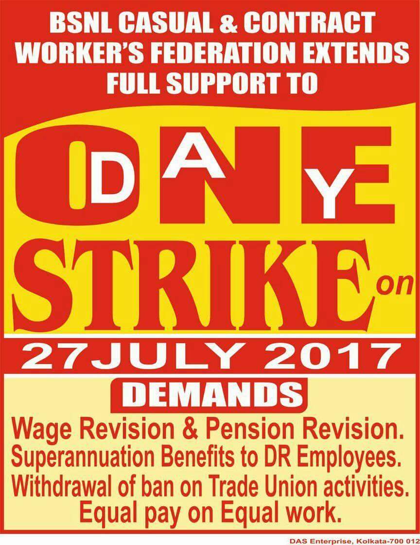 27.7.2017 को हड़ताल 00.00 hrs पर शुरू होगी...